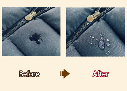 高い耐久性を持つ高機能な撥水加工を施します。これにより、水濡れや雪、日常の泥はね、油性・水性の汚れなどが染み込むのを強力に防ぎます。ダウンをより長く、美しくご愛用いただけます。